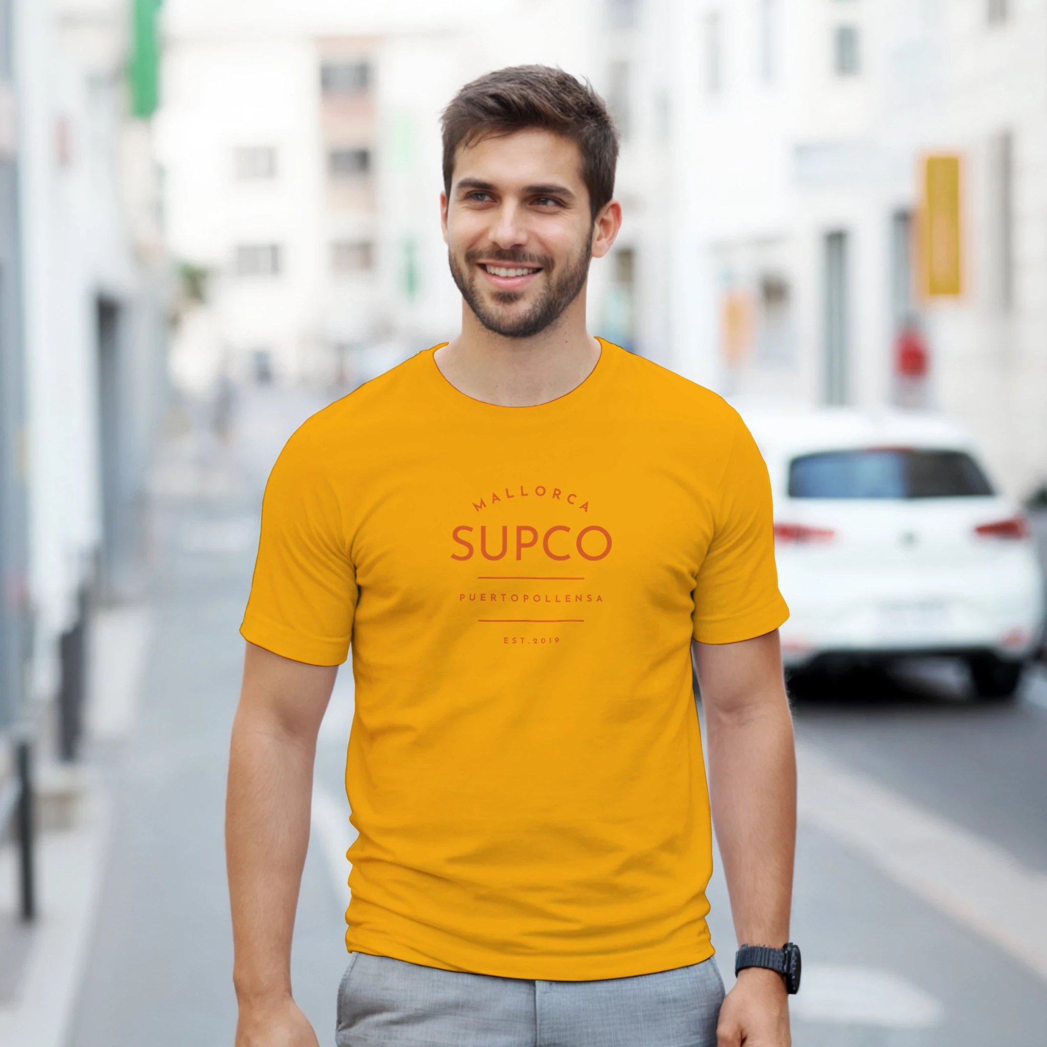 The Mallorca SUPCO Classic Unisex T-shirt – available in Military Green, Ocean Blue, Vibrant Pink and Sunrise Gold. Clean lines. Classic fit. 100% island attitude.